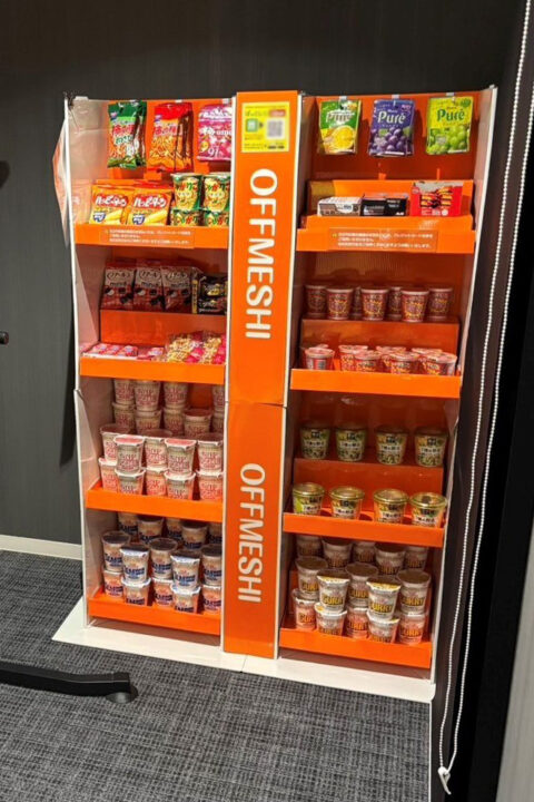 オフィスに置き社食(ミニコンビニ)を設置するサービス「オフめし」は専用工場でこしらえた味に自信のある「オフめしごちそう便」の「GOCHI-DELI(冷蔵そうざい)」、「GOCHI-弁(冷凍弁当)」や企業備蓄対策として有効な「オフめし常温そうざいイート&ストック」の他、飲料・カップ麺・パン・お菓子にいたるコンビニ商品など800以上の豊富なアイテムを卸価格で提供しています。