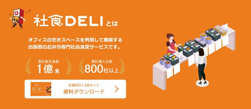 | 特徴 | 1品100円でこだわりのお惣菜を従業員に提供できる(企業負担あり)。ランチに限らず24時間活用可能。3名~数千人規模まで対応していている。 |