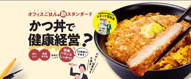 電子レンジ調理で手軽に味わえるスタンド型社食サービスであり、10種類以上の豊富なラインアップから好きな商品を選んで購入、電子レンジでチン!してお召し上がりいただけます。