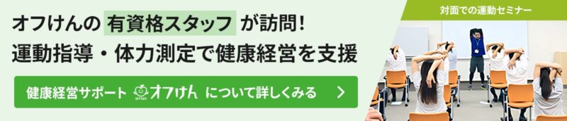エイジフレンドリー補助金を効果的に利用するなら、オフィスに健康を届ける「オフけん」がおすすめです。