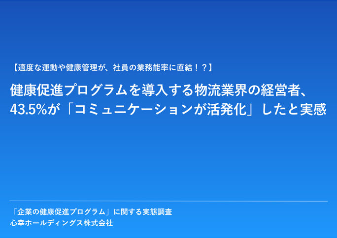 「企業の健康促進プログラム」に関する実態調査 会社名必須 必須項目です。 名前(漢字・かな・カナ)必須 漢字・かな・カナ・スペース・中点のみで入力してください。 メールアドレス必須 有効なメールアドレスを入力してください。 電話番号(ハイフンなし)必須 0から始まる10桁または11桁の数字で入力してください。 都道府県必須 選択してください北海道青森県岩手県宮城県秋田県山形県福島県茨城県栃木県群馬県埼玉県千葉県東京都神奈川県新潟県富山県石川県福井県山梨県長野県岐阜県静岡県愛知県三重県滋賀県京都府大阪府兵庫県奈良県和歌山県鳥取県島根県岡山県広島県山口県徳島県香川県愛媛県高知県福岡県佐賀県長崎県熊本県大分県宮崎県鹿児島県沖縄県 必須項目です。 現在の健康経営に関する関心・注力度合いを教えてください。必須 強い課題を感じる今後注力していきたい情報収集をしている段階特に課題・関心はない 弊社を知ったきっかけ必須 選択してください知人・取引先からの紹介展示会インターネット検索プレスリリース弊社の営業福利厚生研究所(コラム)SNSYouTube他社サイトDM(チラシ・パンフ)DM(メール)看板・ポスター新聞・雑誌その他 必須項目です。 送信する 送信することで「個人情報の取扱いについて」に同意したものとみなします。 Δ