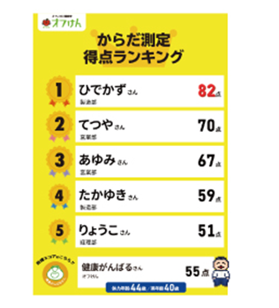 心幸グループ本社(兵庫県尼崎市)で行った「出前からだ測定会」と測定結果ランキング