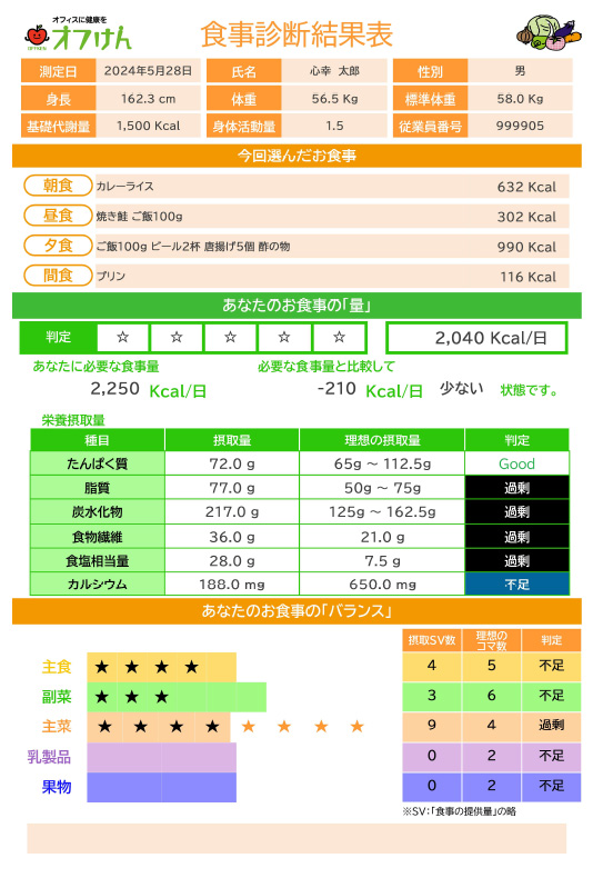 食事診断の結果が出る